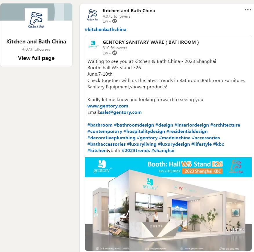 Gentory booth W5 E26 will be exhibited with the world's TOP 10 bathroom brands